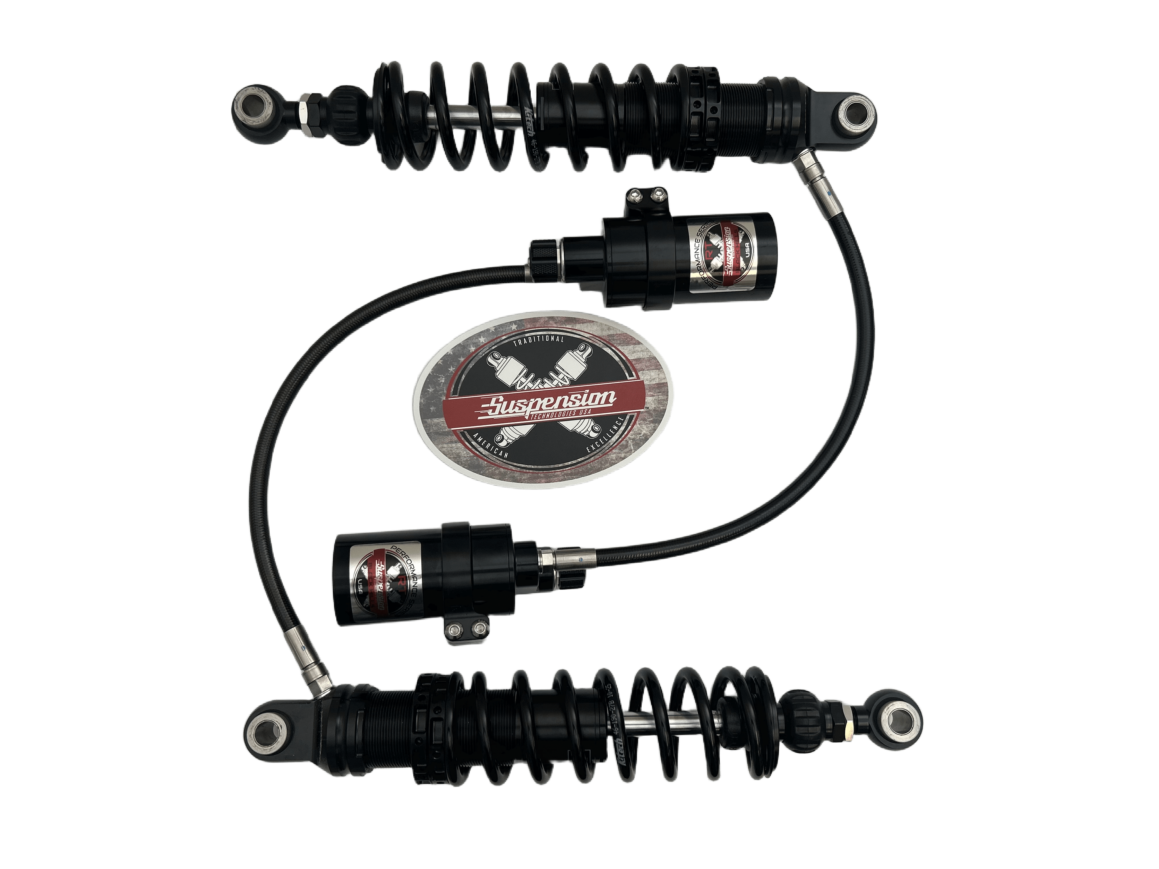 Experience unparalleled performance with the Suspension Technologies / K-Tech Suspension USA RTS Remote Reservoir Double Adjustment shocks, the most adjustable option in the V-Twin market. Tailor your ride like never before with Suspension Technologies Rebound and Compression adjustable shocks. With easily accessible knobs for rebound and compression damping adjustments, fine-tuning your suspension has never been easier.